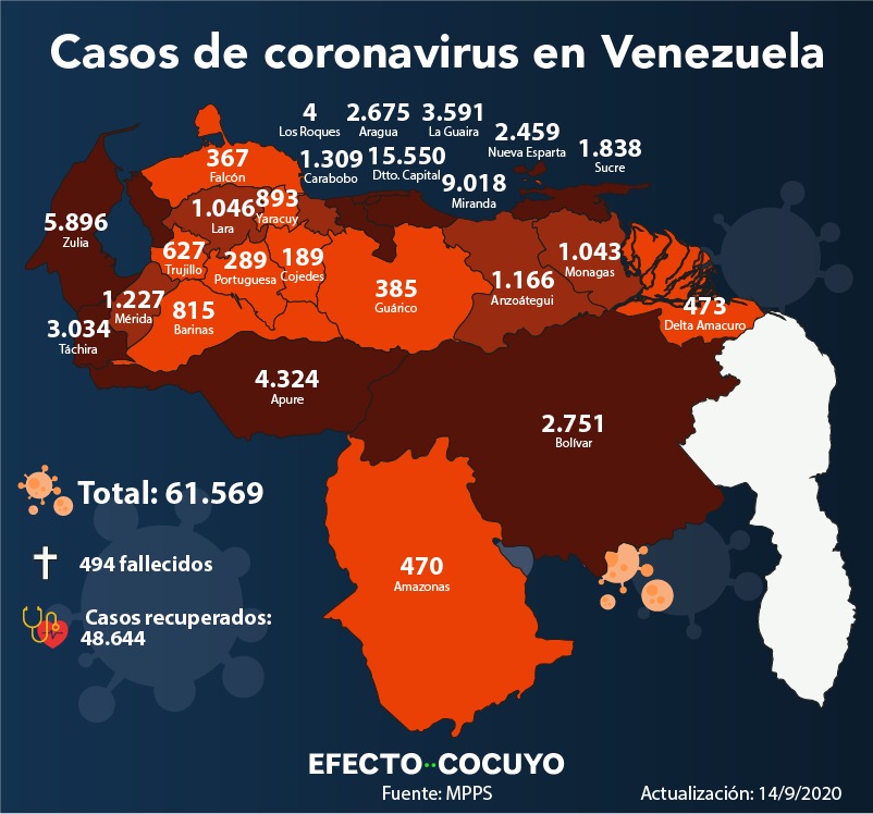 Venezuela suma 1.029 casos de coronavirus y nueve decesos este #16Sep